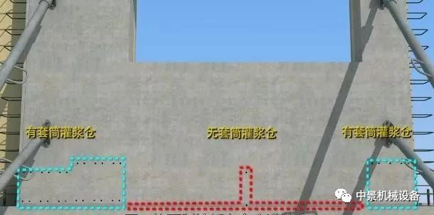 當(dāng)存在無(wú)灌漿套筒的灌漿倉(cāng)時(shí),首先灌注無(wú)套筒的灌漿倉(cāng),有套筒的灌漿倉(cāng)注漿時(shí)選擇靠近無(wú)套筒的灌漿倉(cāng)一側(cè)的注漿孔。如果離無(wú)套筒的灌漿倉(cāng)*近的注漿孔不便封堵。則可向相反方向順延一個(gè)。
